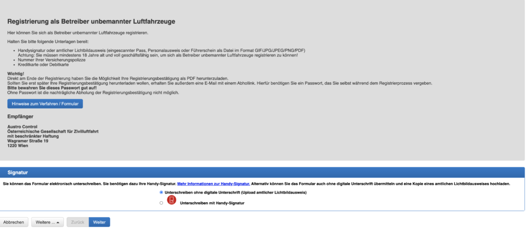 Der Ablauf der Drohnen Registrierung bei der Austrocontrol in 2021