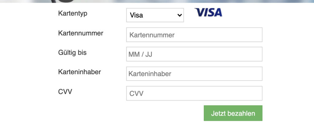 5. Danach geht es zur Bezahlung (wie gesagt -> geht nur Visa oder Mastercard Kreditkarte)